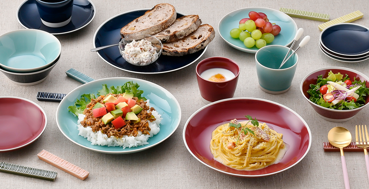 波佐見焼ならではの美しい発色を最大限に引き出し、料理がきれいに映えるカラーを一つひとつ丁寧に選んでいます。やわらかく落ち着いた色味は、和洋問わずさまざまな料理と相性が良く、盛り付けるだけで、いつもの食卓が少し特別な雰囲気に。 「毎日使いたくなる色」であることを大切にしています。